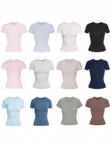 高品质对版 skims卡戴珊25秋季新款奶昔粉色上衣修身短袖T恤打底