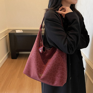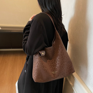 通勤复古磨砂豹纹包包2025秋冬季新款时尚大容量单肩包托特水桶包