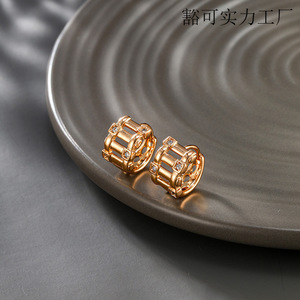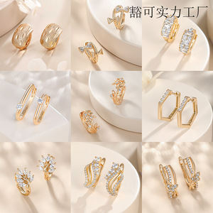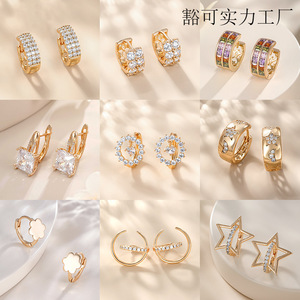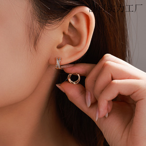 旭平外贸跨境个性耳圈耳扣欧美夸张耳饰女气质锆石耳环夏季高级感