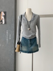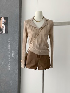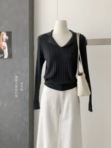 韩系温柔风针织长袖t恤女秋季新款内搭修身显瘦叠穿外搭正肩上衣