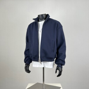 跨境美式重磅立领开衫卫衣女秋季双拉链纯色百搭情侣运动外套男