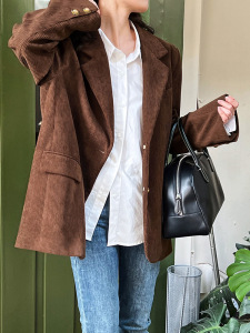 棕色灯芯绒西装外套女2025春季新款时尚高级感宽松休闲小西服上衣