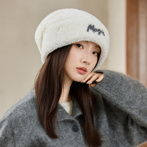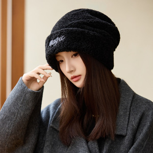 韩版冬天帽子女加绒保暖针织帽时尚百搭刺绣盆帽显脸小毛线堆堆帽