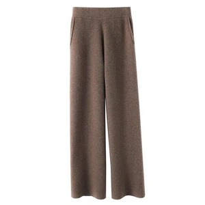 鄂尔多斯市秋冬羊毛针织宽松直筒裤女羊绒阔腿裤拖地裤小个子带兜