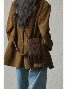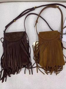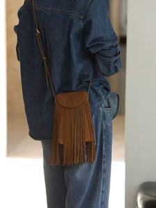 西部牛仔风斜挎小包包女式2025新款单肩包棕色波西米亚复古流苏包