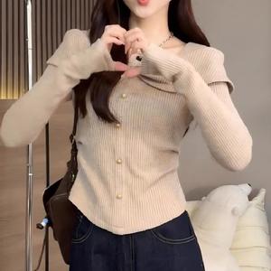 2025秋季新品设计感小众褶皱荷叶边领长袖t恤显瘦减龄洋气上衣