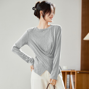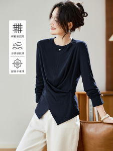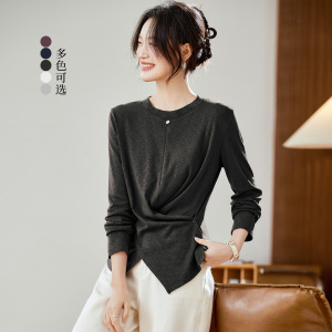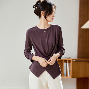 棉茧 紫色T恤衫女长袖2025秋冬装新款内搭上衣设计感不对称体恤