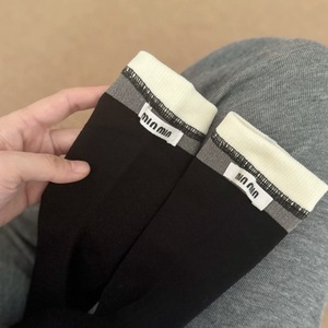 穿搭更有层次感~欧货时尚撞色布标中筒袜子女ins个性洋气百搭棉袜