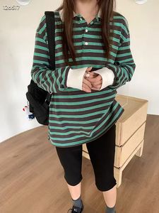 秋季新款韩系休闲时尚学院风撞色条纹翻领宽松长袖卫衣上衣女2727