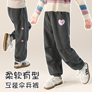 HelloKitty凯蒂猫女童秋季休闲裤2025款洋气宽松日常风工装伞兵裤