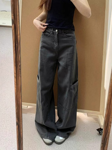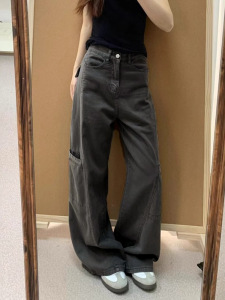 灰色工装裤女2025新款高腰显瘦大码胖mm宽松直筒垂感拖地阔腿长裤