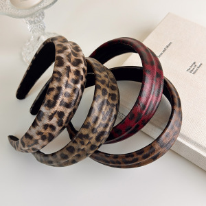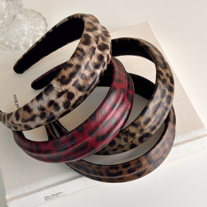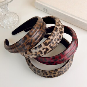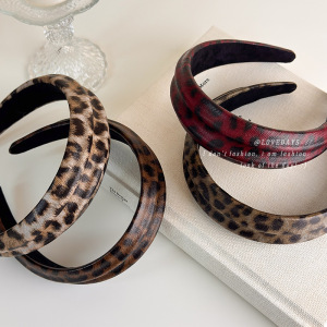 港风复古仿皮质豹纹发箍女高颅顶压发头箍2025新款高级感百搭发饰