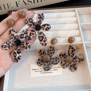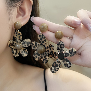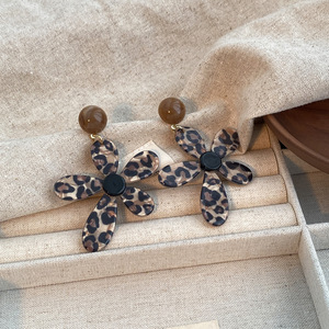 复古美拉德港风波点豹纹花朵吊坠耳环夸张小众设计时尚个性耳饰