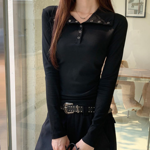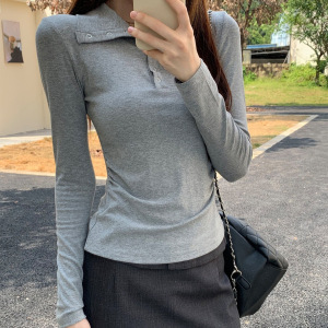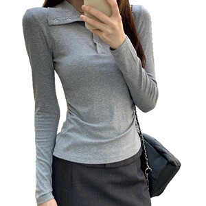 BELLA高领长袖t恤女早秋季堆堆领打底衫内搭褶皱收腰显瘦修身