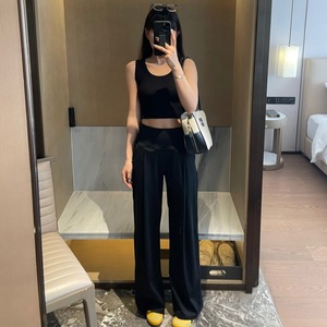 alo女式休闲裤25秋季新款高腰拾褶阔腿裤宽松压花显瘦直筒拖地裤
