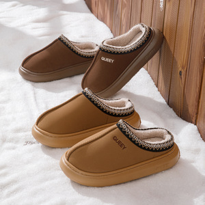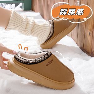 2025新款冬季厚底棉拖鞋女防滑包头保暖居家民族风毛绒棉鞋秋冬天