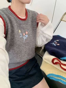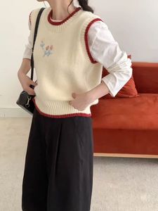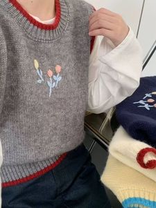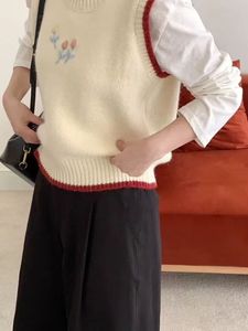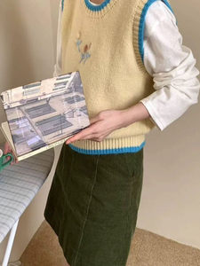 粗棒针撞色马甲女背心秋冬2025新款重工手工刺绣针织毛衣坎肩外穿