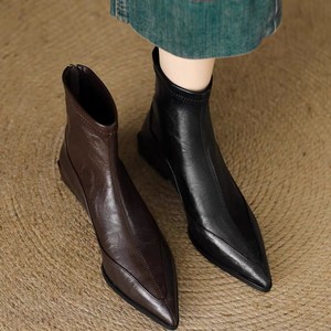 法式尖头弹力瘦瘦靴低跟2025秋冬新款粗跟短靴女复古棕色切尔西靴