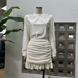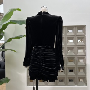 亚马逊2025秋聚会氛围温柔名媛小姐收腰丝绒褶皱荷叶边长袖连衣裙