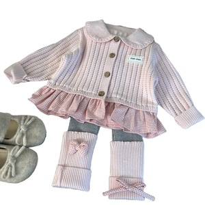 韩版童装2025新款秋季女童拼接格子贴标毛衣开衫儿童堆堆袜打底裤