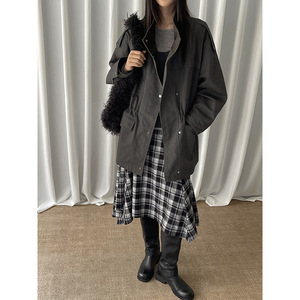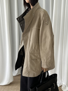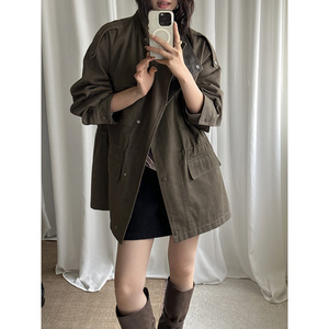 慵懒风水洗宽松廓形风衣外套女秋季十三行新款美式复古中长款夹克
