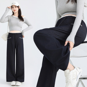 实拍孕妇裤仿牛仔阔腿裤新款2025秋冬季垂感无托腹裤阔腿休闲裤子