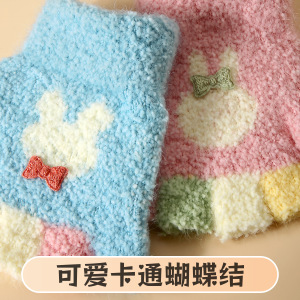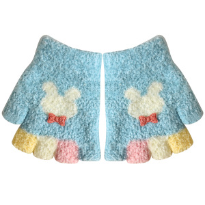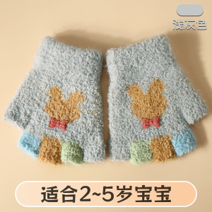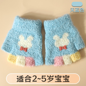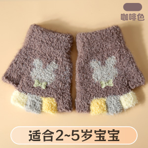 卡通可爱儿童手套毛绒保暖半指手套小童中童冬季保暖手套