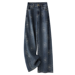 蓝色阔腿牛仔裤女2025秋季新款高级感宽松显瘦垂感百搭拖地直筒裤