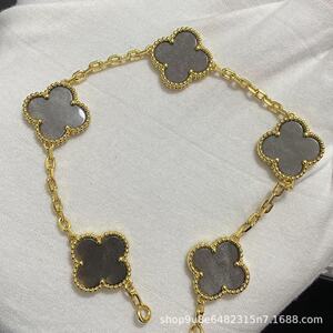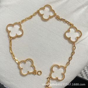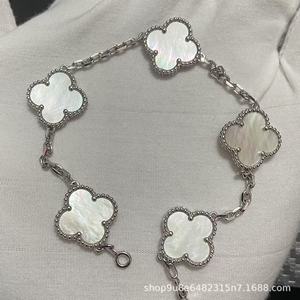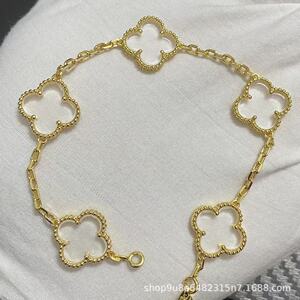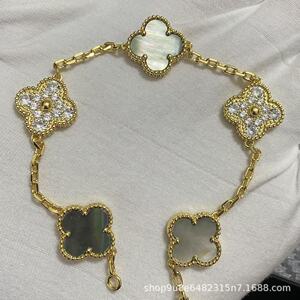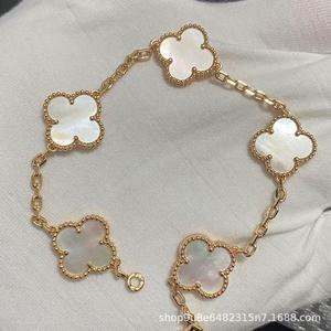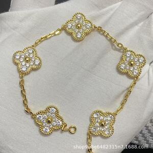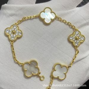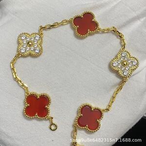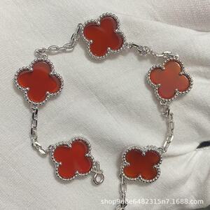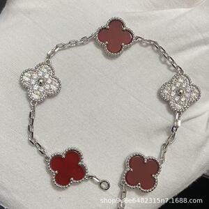 新版CNC扣四叶草五花手链天然红玛瑙白贝母间钻手链满钻镭射手链