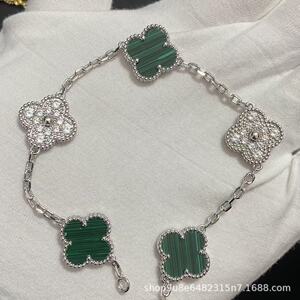 白金色【孔雀石间钻】五花手链