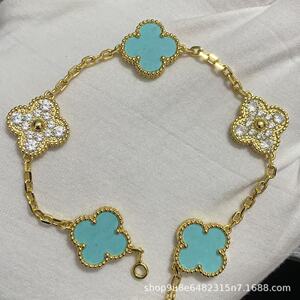 黄金色【薄荷绿间钻】五花手链