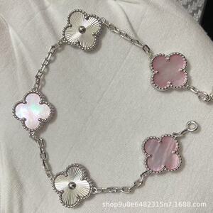 白金色【粉贝母间钻】五花手链