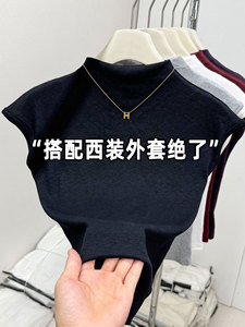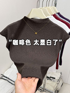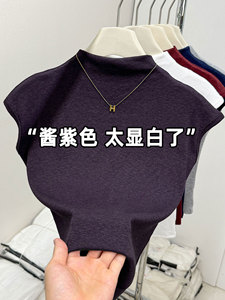 欧货半高领小飞袖T恤秋上衣女新款修身显瘦时尚短款内搭打底