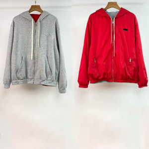 秋冬新款双面两穿M字母贴布刺绣百搭休闲连帽拉链卫衣外套情侣款