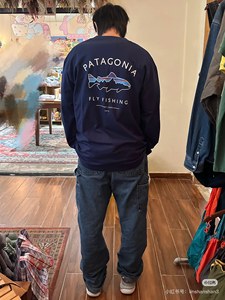 Pata巴塔经典飞鱼环保主题长袖T恤卫衣男女休闲户外山系风情侣款