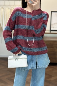 丝羊绒横条纹宽松羊毛衫女2025秋装新款圆领欧货针织衫休闲毛衣女
