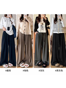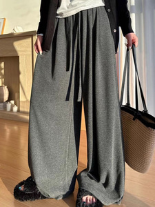 2025秋薄款糯米裤运动窄版休闲裤女 高腰抽绳系带宽松直筒阔腿裤