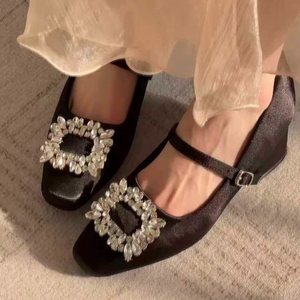 钻晚粗跟小2025晚风新款玛丽珍单鞋女高跟鞋浅丝绒口水方头气质