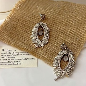 小红书淘宝新品杨采钰同款轻奢复古长款米珠流苏吊坠树叶耳环耳饰