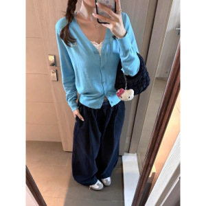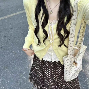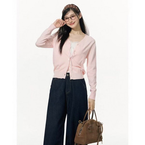 韩系粉色软糯开衫配吊带的上衣毛衣女秋季新款宽松显瘦外搭针织衫