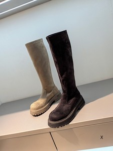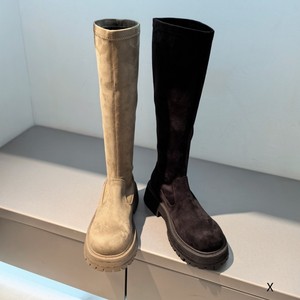 欧洲站女鞋25秋冬简约时尚弹力布圆头休闲舒适套筒厚平底弹力长靴