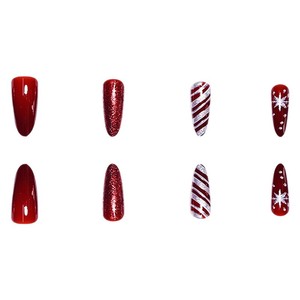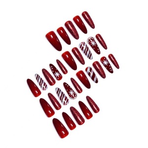 圣诞款中款水滴型指甲片撞色系列水钻雪花纹理点缀穿戴甲成品批发