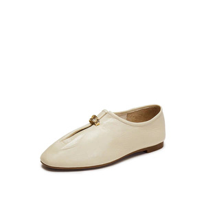 打版中复古法式简约玛丽珍鞋金属扣方头浅口休闲百搭平底穆勒单鞋