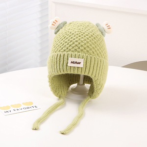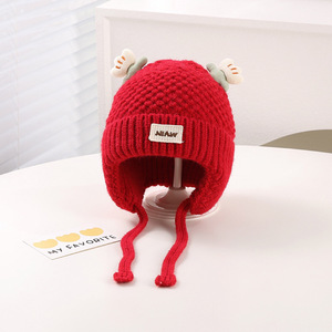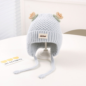 宝宝帽子冬天毛线帽婴幼儿小月龄可爱韩版加厚保暖针织护耳帽防风