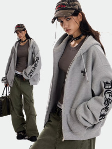 美式复古字母印花连帽卫衣女2025年秋季宽松休闲百搭显瘦长袖外套