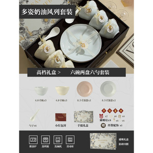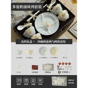 高颜值陶瓷餐具套装家用精致釉下彩碗盘套装乔迁新居订婚结婚送礼