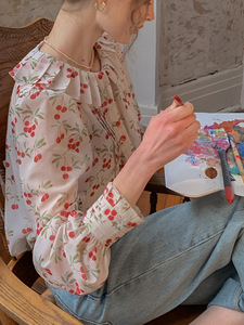 Dailyart法式慵懒拉夫领对丝压绉领工艺轻盈感灯笼袖衬衫上衣