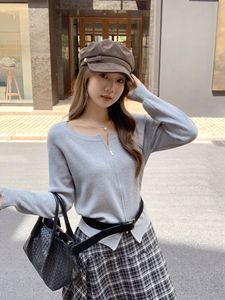 灰色温柔风圆领针织开衫女2025秋季洋气减龄双拉链外穿打底衫上衣