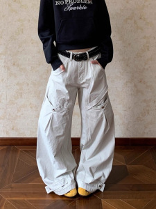 美式做旧廓形弯刀工装裤男女秋季新款cleanfit宽松设计感休闲裤子
