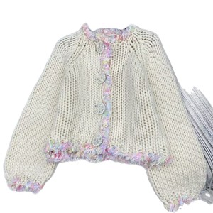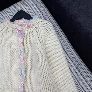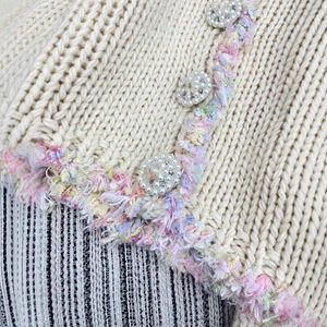 南油直供25秋冬时尚撞色圆领流苏针织开衫经典重工钉钻单排扣上衣